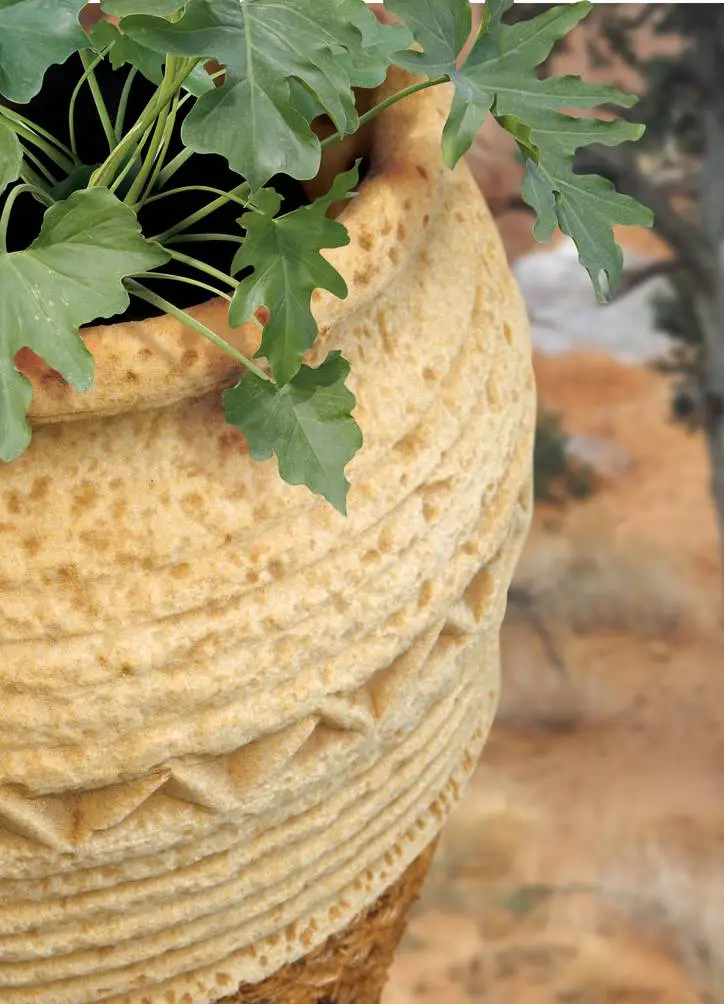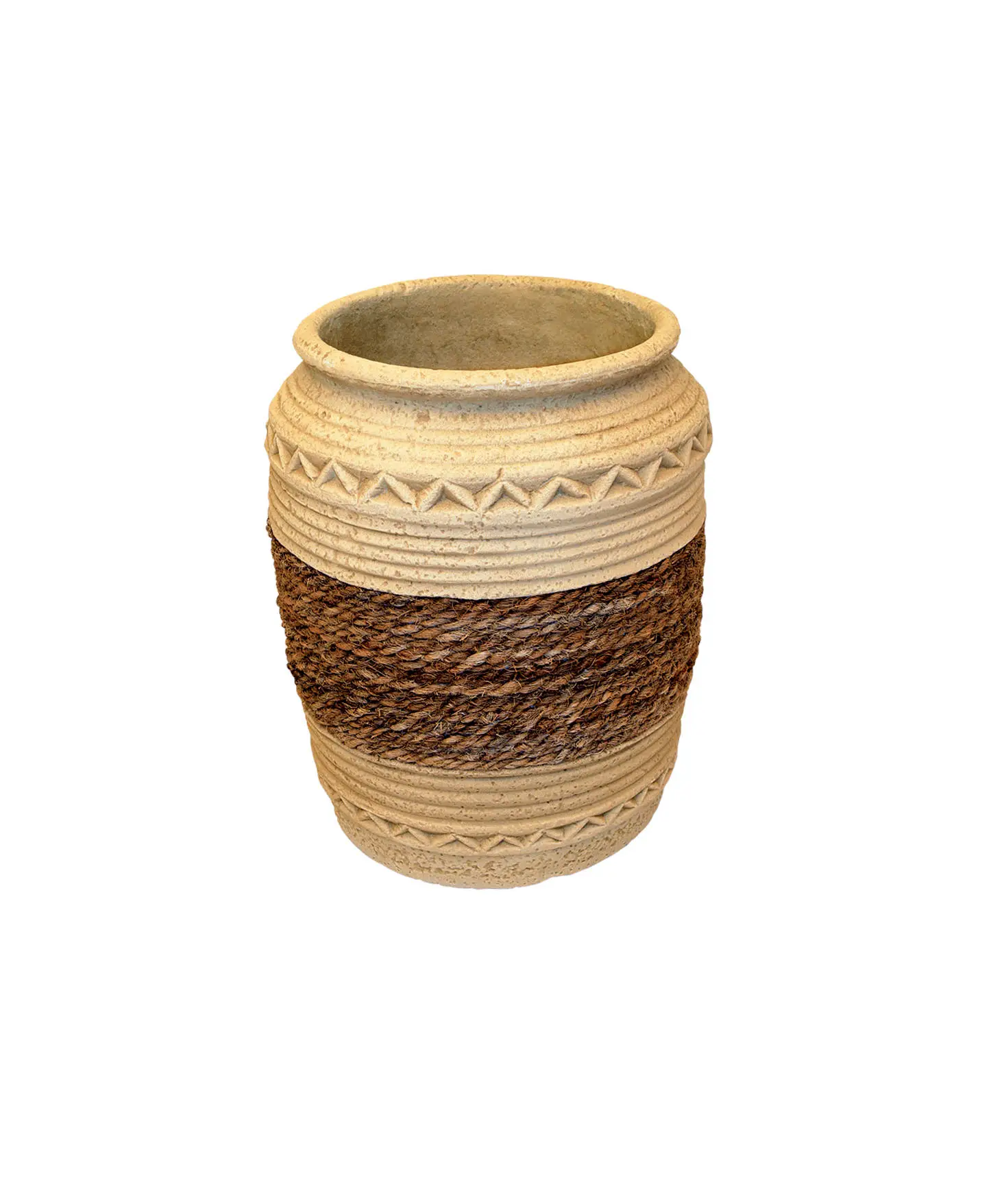A stylish clay pot combining natural pottery with braided rope, giving it a warm rustic touch. A unique piece that adds a distinctive charm to any décor