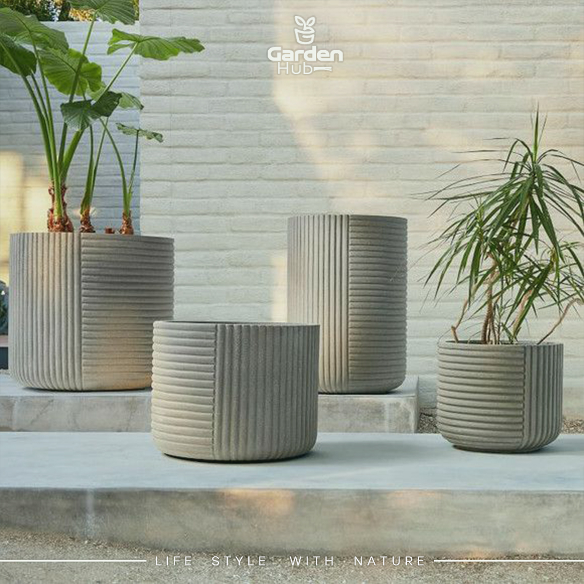 GRC Circular Plant Pots, Ribbed planter pots ,size 50 x 55 cm ,Flower Pots Outdoor ,Indoor courtyard , Planters with Drainage Hole, Gray color.